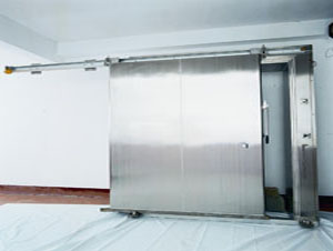 門扇與地坪、門框的接合處采用特制定形,且耐低溫、強彈性的橡膠材料,兩道平面形式密封、提高密封性能。四周設(shè)有低電壓、高效率電加熱器,防止門扇與門框及地坪的凍結(jié)。